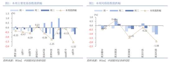 从风格来看,本周小盘风格相对占优,中证1000(-0.13%)跌幅小于沪深300(-0.59%);五大风格指数中,周期风格上涨0.65%,而稳定风格和消费风格明显回调。