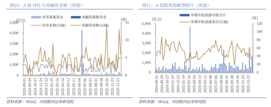 下周市场资金流出压力将较本周上升。本周共有34家公司限售股陆续解禁,合计解禁23.39亿股,解禁总市值571.67亿元;下周(2026年1月5日-1月11日)预计共有36家公司限售股陆续解禁,合计解禁43.07亿股,按2025年12月31日收盘价计算,解禁总市值约为1624.52亿元。
